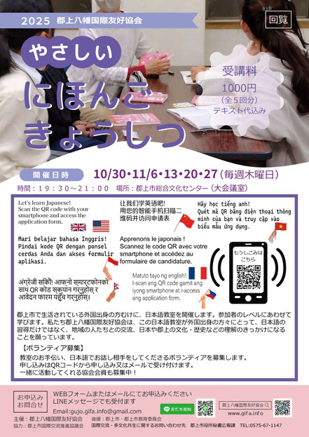 1989年設立以来、「草の根、国際交流・互いに学び、助け合おう」をモットーとして、「国際理解事業」「国際交流事業」「国際貢献事業」等の活動を中心に、海外留学生のホームスティの受入れや市内で暮らす外国出身者を対象とした多文化共生の活動を続けております。郡上が世界とつながるきっかけの窓口となり、活動を通して郡上の魅力を他国の方々へ発信するお手伝いをしています。